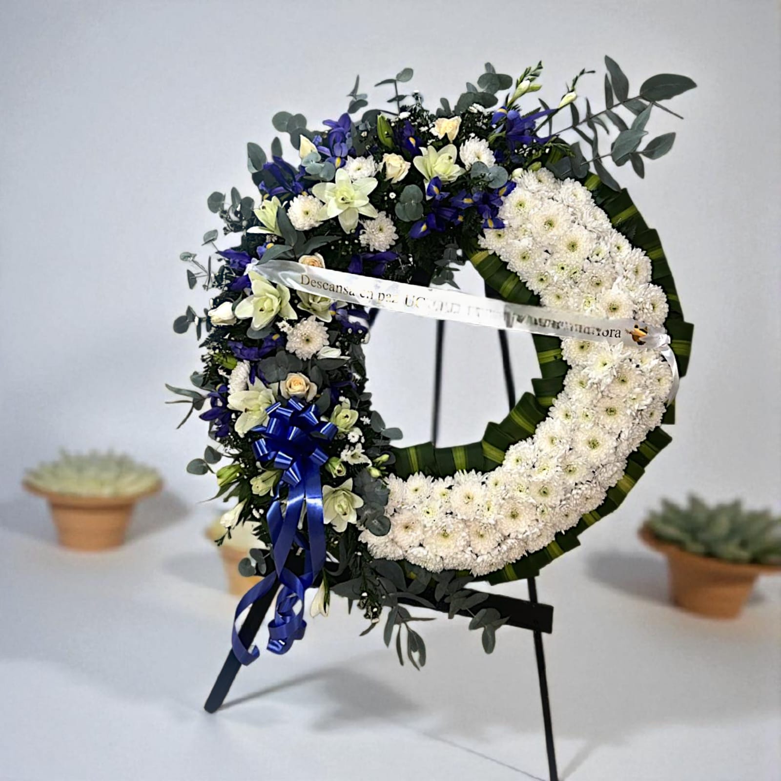 - Con flores variadas como poma, lirio, flor en tono morado o azul
