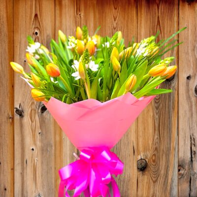 Los tulipanes pueden variar de color según disponibilidad, se pueden enviar en botón la flor para su durabilidad